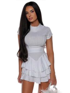 Rochia Elegant Russian mizează pe detalii vizuale spectaculoase: volanele plasate strategic în zona bustului și a fustei creează volum și mișcare, contribuind la acel efect de siluetă în formă de clepsidră pe care toate femeile și-l doresc. Bretelele subțiri, decolteul în V și lungimea mini adaugă un plus de feminitate și îndrăzneală, păstrând în același timp un aer sofisticat.