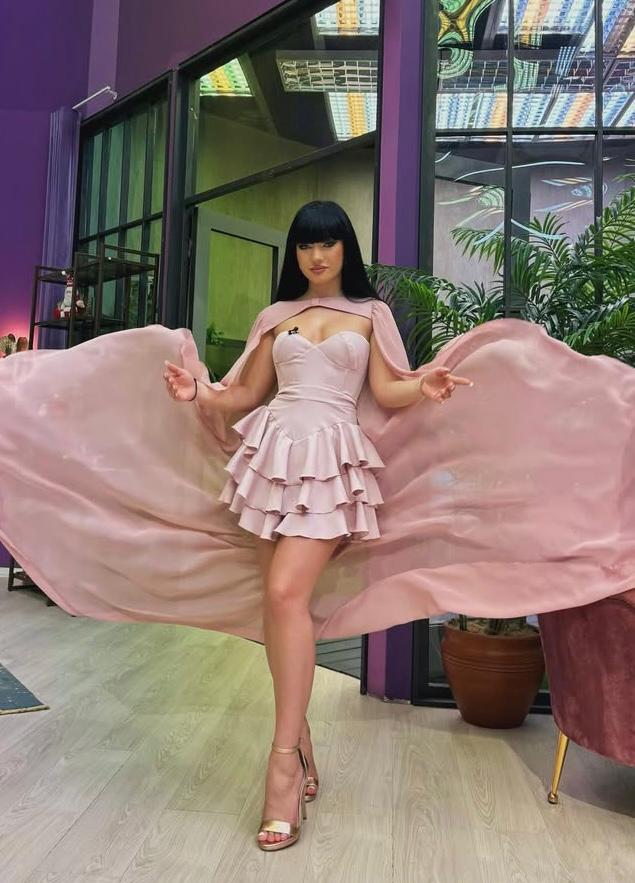 Sugar Dress este rochia care atrage toate privirile. Creată dintr-un material cu ținută, într-o nuanță neagră clasică, această piesă evidențiază perfect talia și bustul printr-un decupaj geometric inedit. Volanele dispuse în cascadă adaugă volum și mișcare, iar croiul mini o transformă într-o alegere irezistibilă pentru petreceri sau ieșiri glam. Poart-o cu tocuri și accesorii strălucitoare pentru un look de neuitat.