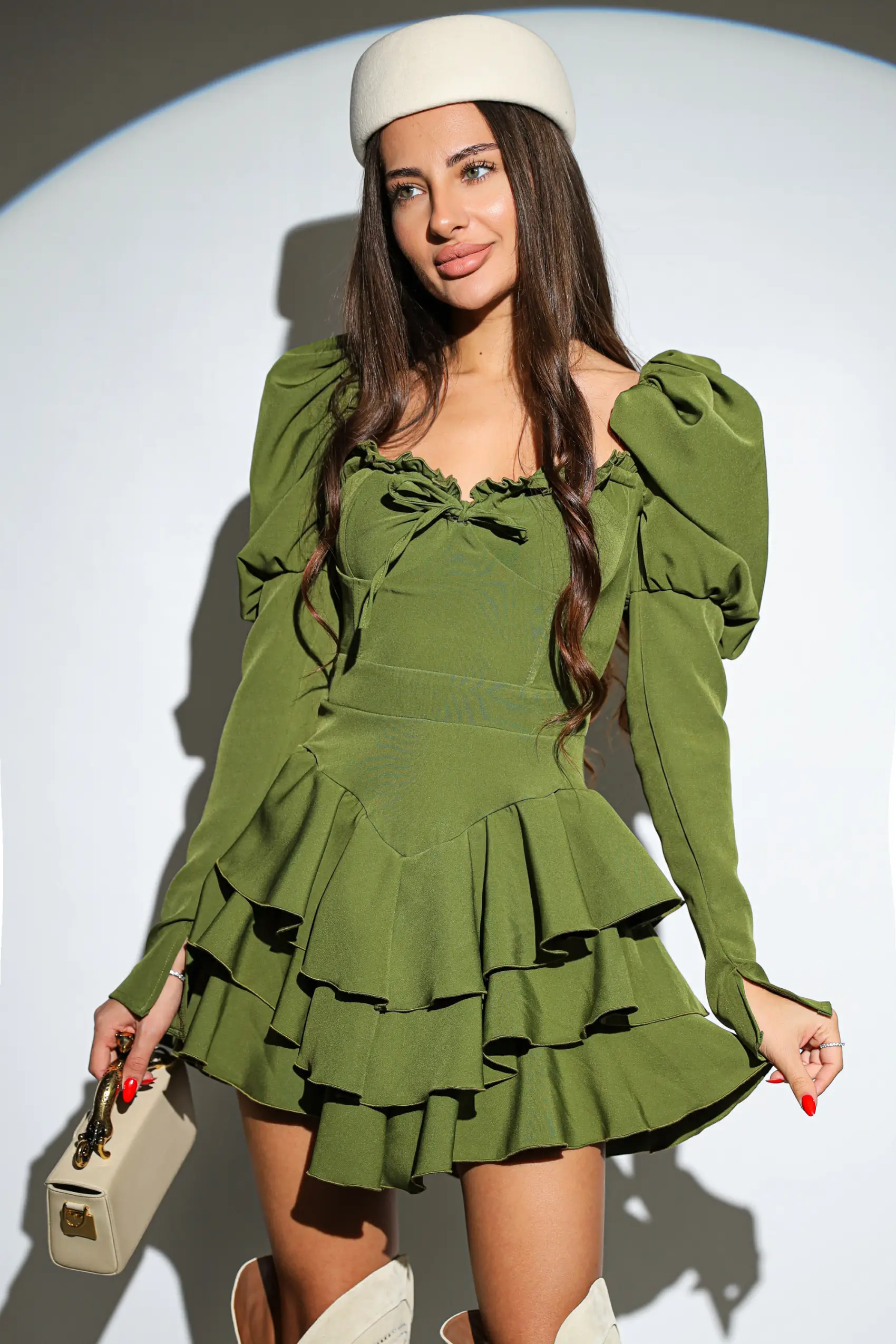 Belle dress este o rochie eleganta cu volane. Rochia are umeri bufanti si un croi care avantajeaza orice silueta. Poate fii purtata atat cu bocanci cat si cu cizme sau sandale.