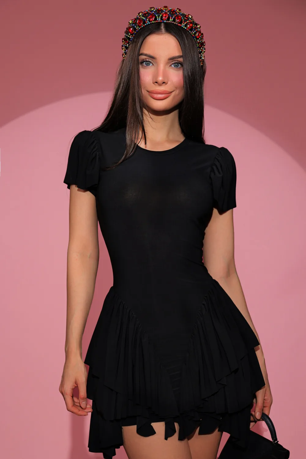 Elegant dress este o rochie scurta cu volane foarte eleganta ce poate fi purtata atat ziua cat si seara.